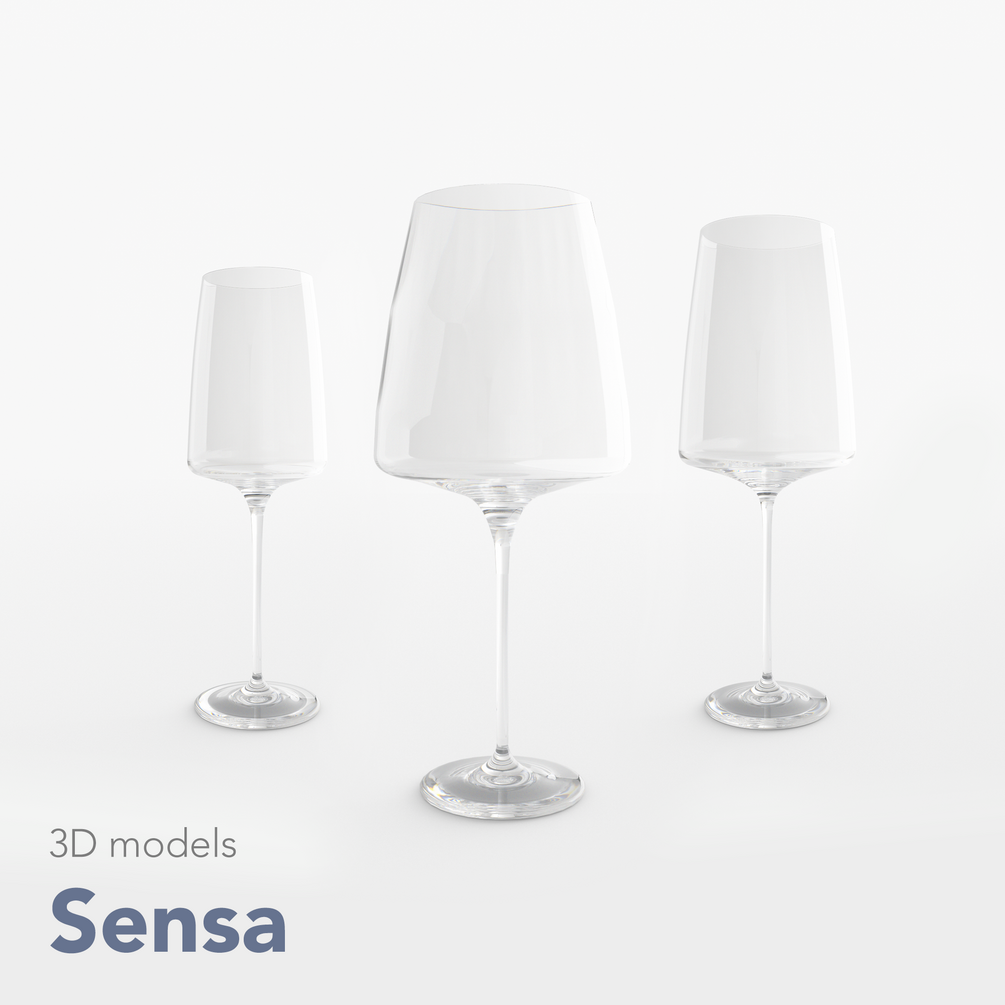 High quality 3D model collection of wine glasses that are modeling in real size. The SENSA range set has 6 glasses. The model is created paying much attention to all the details. It has accurate grid, ready to use and perfect for any kitchen or living scene.